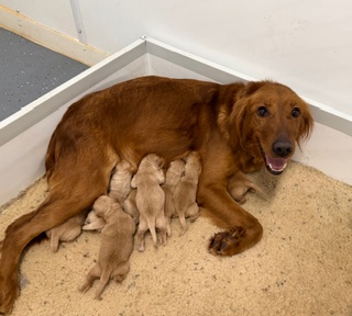 March 14, 2026 Maggie and Oliver welcomed a beautiful litter of Golden Retrievers on March 4! There are 8 sweet babies! We have only 1 male still available!